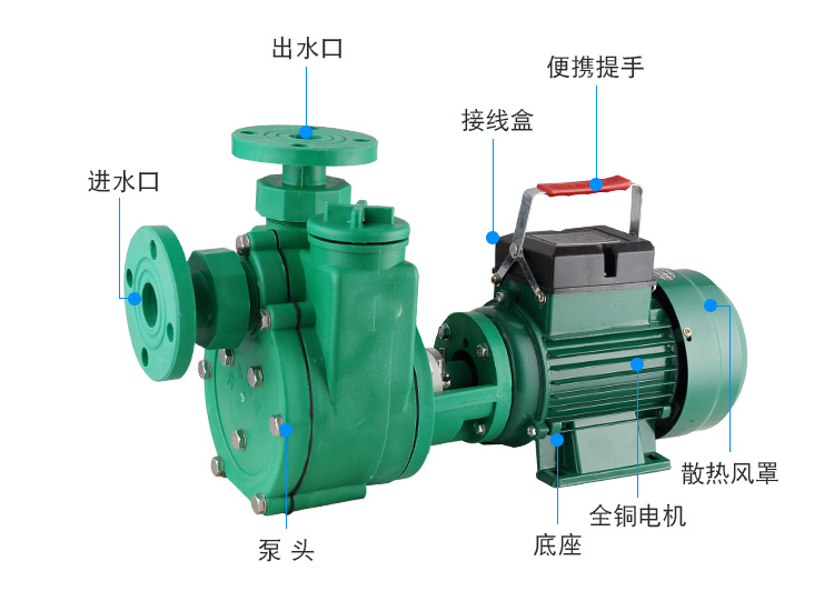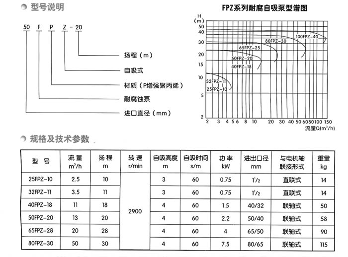 FPZ型軸聯(lián)式塑料自吸泵一次注塑成型、機(jī)械強(qiáng)度高,耐腐蝕性能