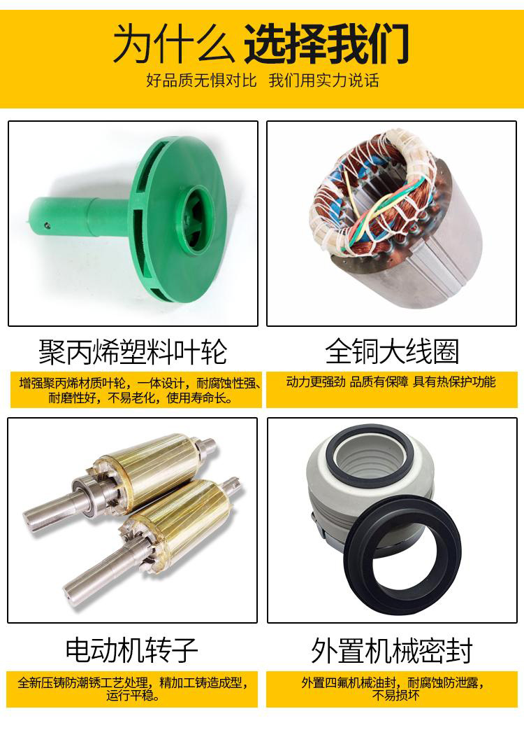 泵材質(zhì),采用無毒、無污染,增強(qiáng)聚丙烯RPP(適用溫度-14℃~100℃)、ABS、UPVC第一次性注塑成型。
