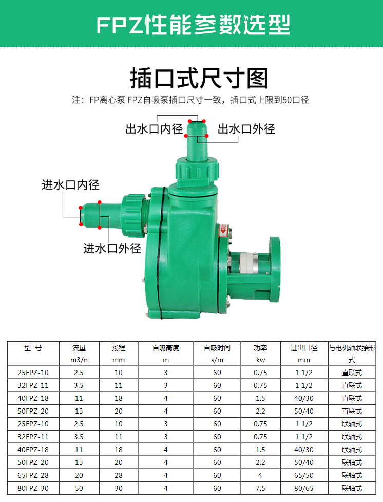 FPZ型直聯(lián)式塑料自吸泵主要用于輸送酸,堿,鹽等腐蝕性液體。