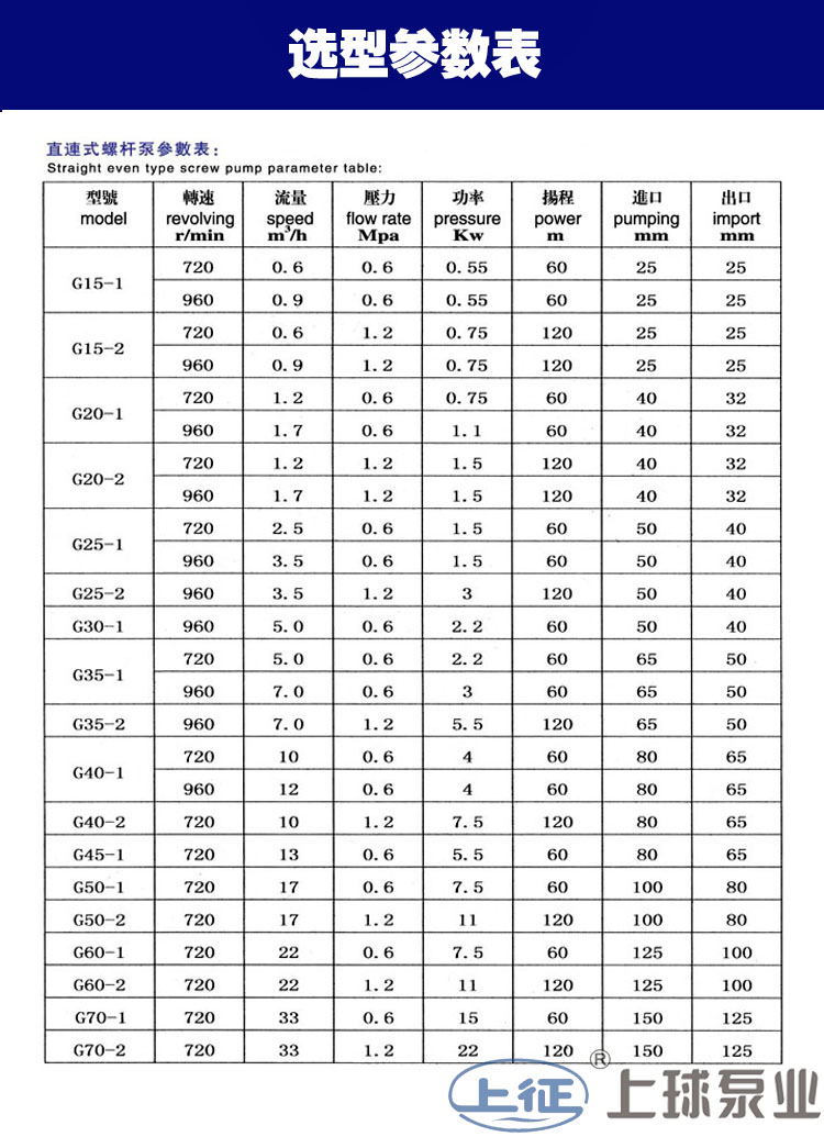 | 泵規(guī)格 | G20 | G25 | G35 | G40 | G50 | G70 | G85 | G105 | G135 |